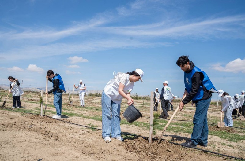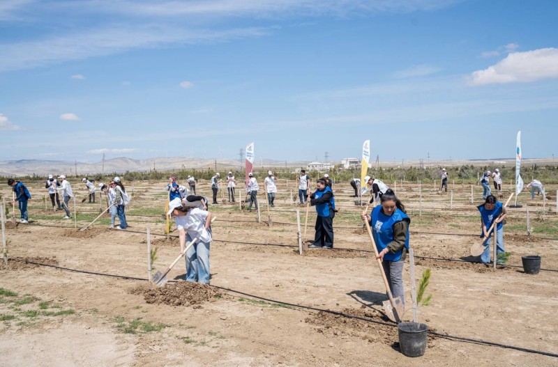 Ağacəkmə aksiyasında Müşfiqabad qəsəbəsində meşə massivi ərazisində Abşeron yarımadasının torpaq-iqlim şəraitinə uyğun Eldar şamı və zeytun ağacları əkilib.