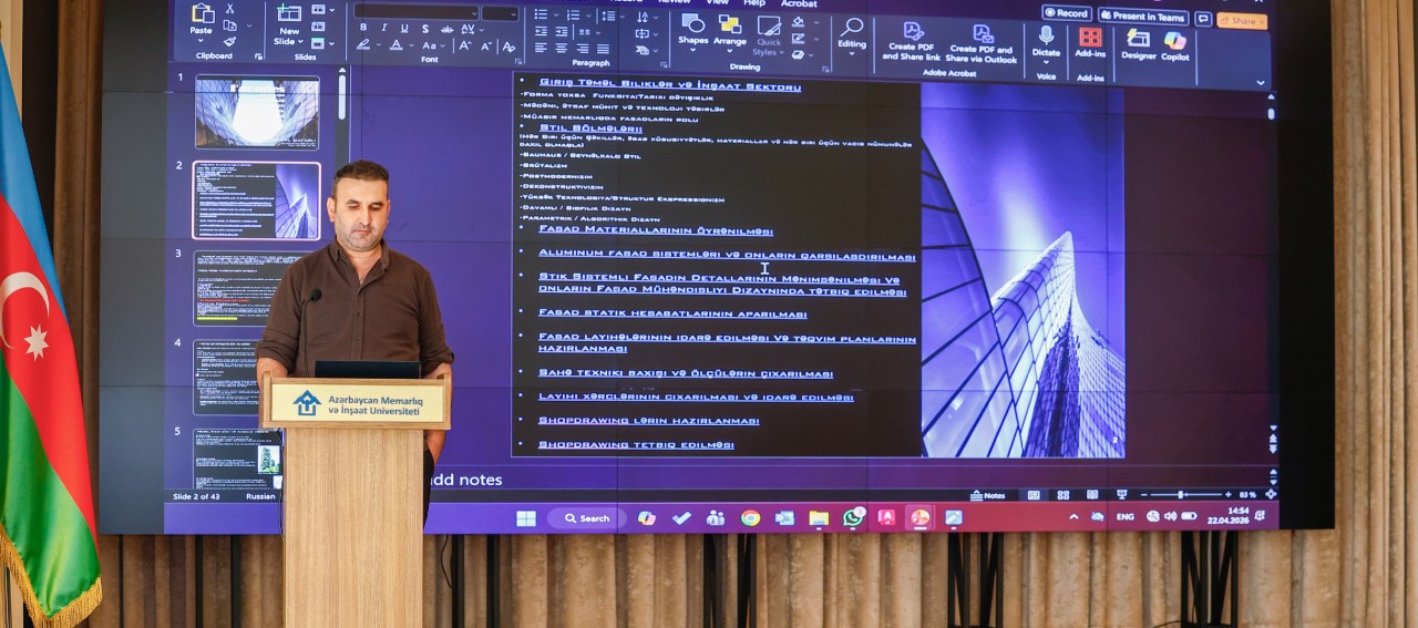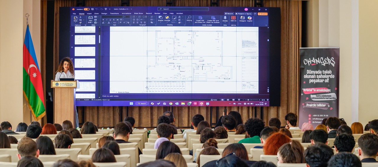 Azərbaycan Memarlıq və İnşaat Universitetində“Changers Academy” tərəfindən təşkil olunan təqdimat çərçivəsində tələbələr memarlıq və tikinti sahəsində müasir trendlər, innovativ yanaşmalar və karyera imkanları ilə tanış olublar.