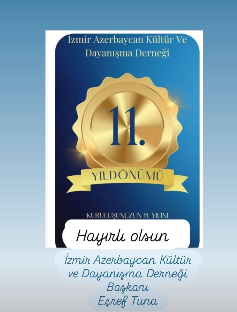 Bir dostluğun, bir yurd sevdanın, bir millət mübarizəsinin ildönümüdür. Azərbaycanla Türkiyənin könül körpüsünü İzmirin qəlbində yaşadan İzmir Kültür və Dayanışma Dərnəyi bu gün 11 yaşına çatdı.