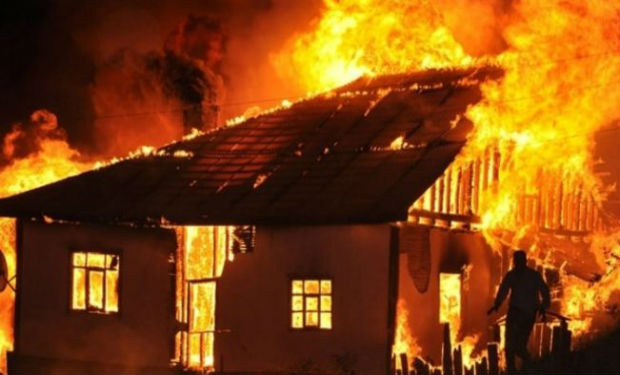 Üçotaqlı ev əşyaları ilə birlikdə yandı - FOTOLAR